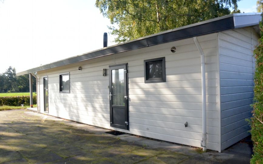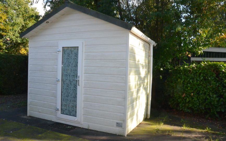Praktisch is het chalet ook: in de aparte kunststof berging zijn diverse bergingsmogelijkheden en een aansluiting voor de wasmachine aanwezig, zodat u van alle gemakken voorzien bent. Eventuele fietsen en tuingereedschap kunnen hier eenvoudig worden opgeborgen. Op het ruim aangelegde terras kunt u heerlijk genieten van een kopje koffie in de zon. Naast een buitenkraan is er ook een parkeerplaats aanwezig, waardoor u uw auto comfortabel naast het chalet kunt parkeren. Alles is aanwezig om comfortabel te verblijven—of u nu een weekend komt uitwaaien of een langere periode wilt genieten van de natuur.
